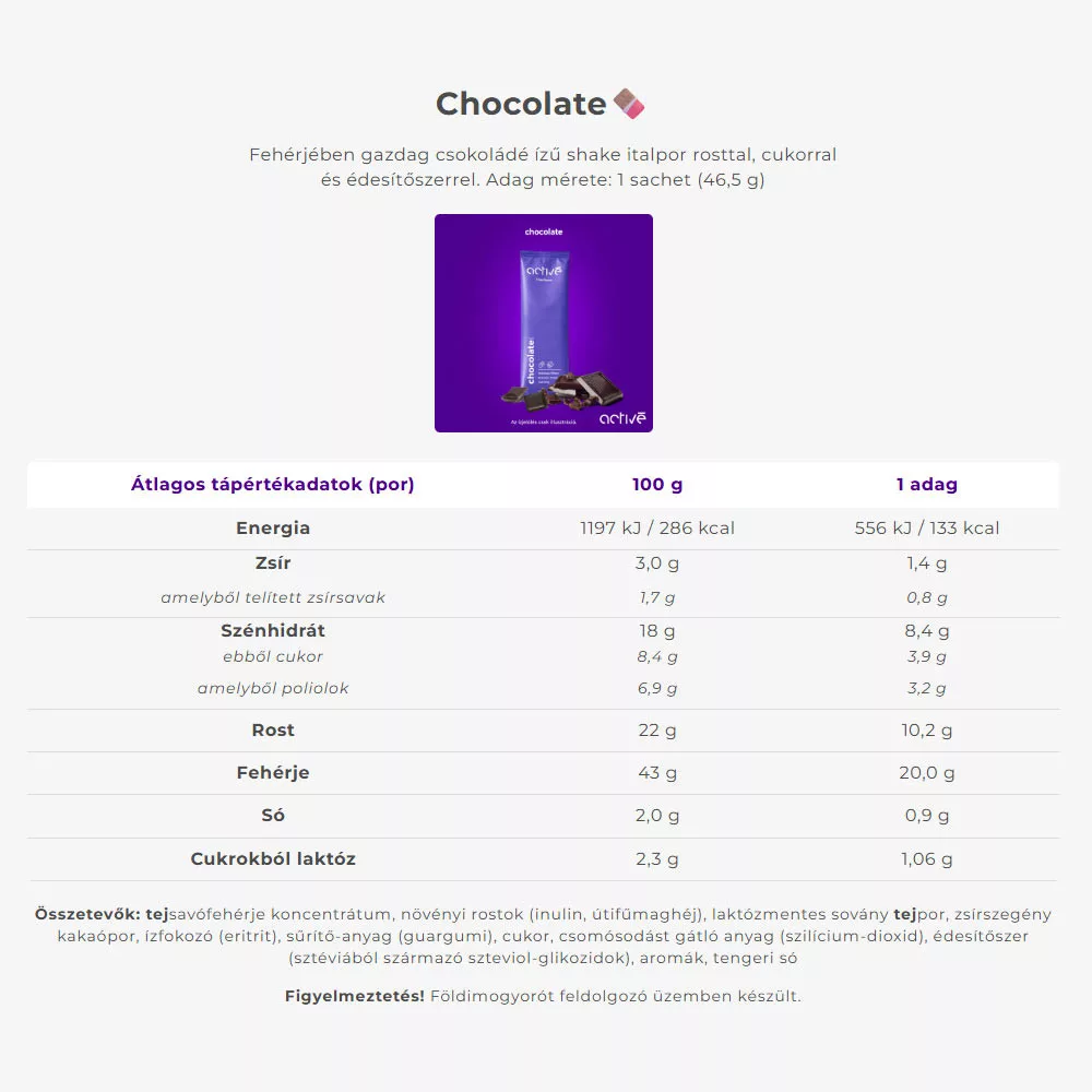 Nous avons enrichi notre FiberShake au chocolat avec beaucoup de cacao belge et, pour la rendre vraiment délicieuse, nous l'avons sublimée avec une pincée de sel de mer. La plupart des gens la comparent à un pudding riche et intensément chocolaté, ce qui en fait notre saveur la plus populaire. Ce n'est pas un hasard – elle a remporté le Superior Taste Award en 2023 !