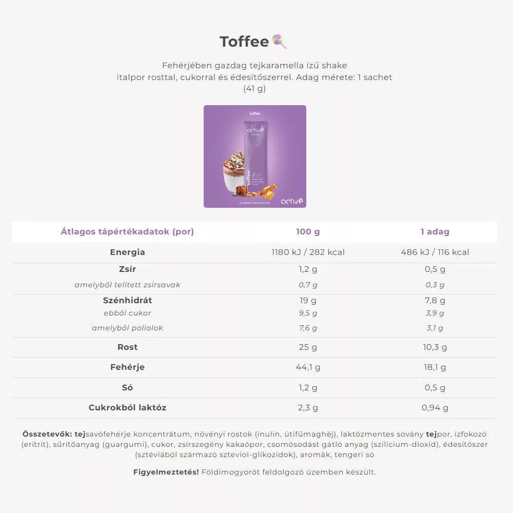 La saveur de toffee est profonde et riche sans être trop prononcée, se mêlant harmonieusement à une subtile onctuosité qui satisfait toutes les envies de douceur. L’effet global rappelle la sensation de savourer une tasse de sauce caramel — réconfortant à tout moment de la journée — tout en profitant des deux bénéfices de FiberShake.