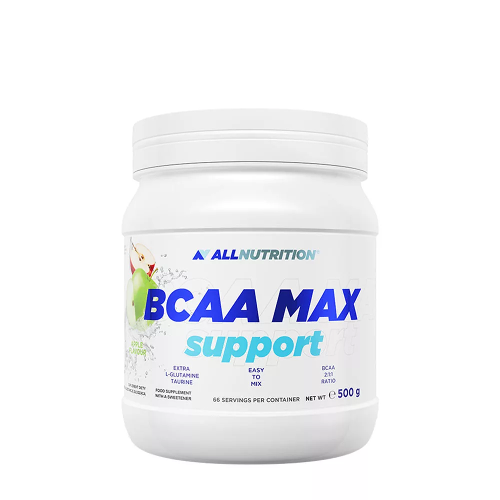 ALLNUTRITION BCAA MAX SUPPORT est un complexe d’acides aminés à chaîne ramifiée dans un ratio de 2:1:1 (L-leucine : L-valine : L-isoleucine), conçu pour soutenir le corps pendant et après l’activité.