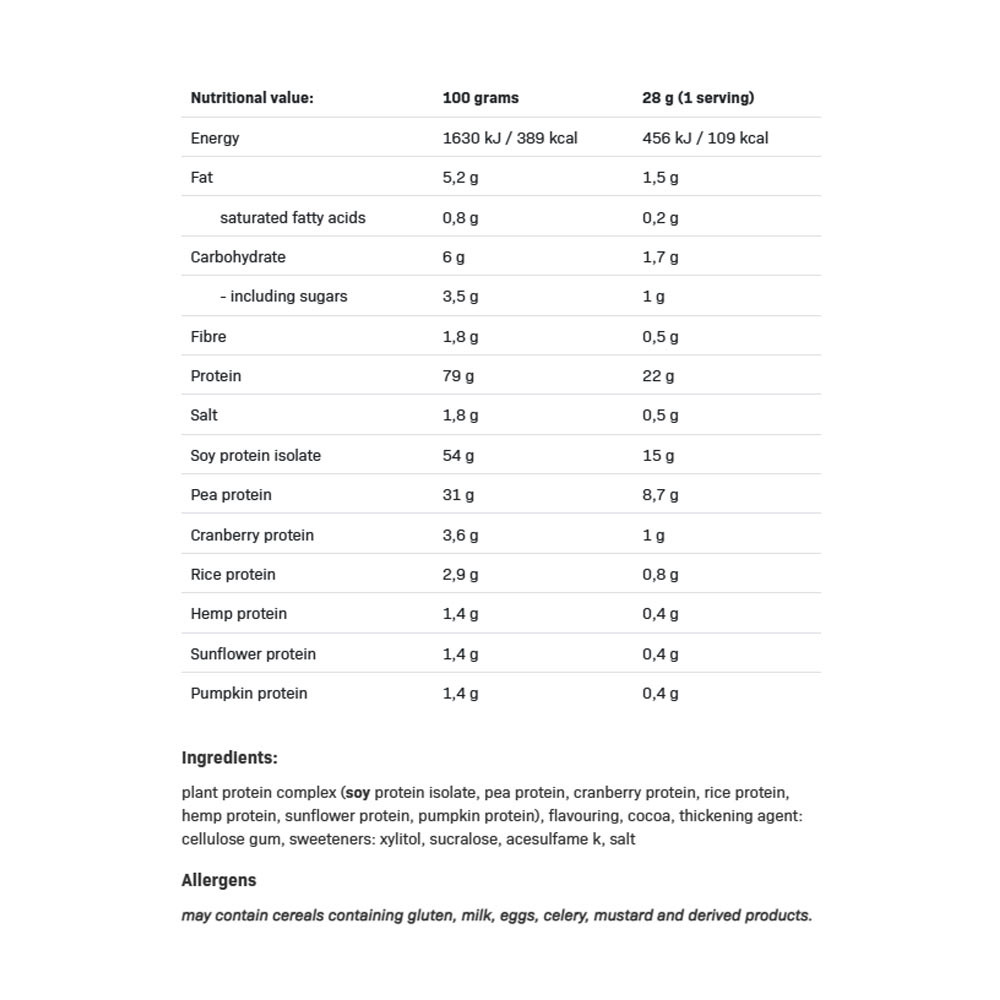 VEGAN PROTEIN contient jusqu’à 7 types de protéines végétales : isolat de protéine de soja, pois, canneberge, riz, tournesol, amande et chanvre.