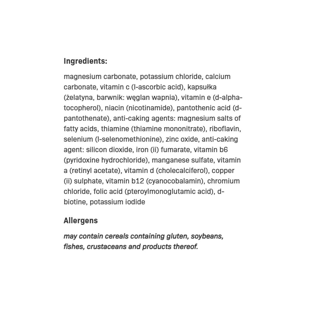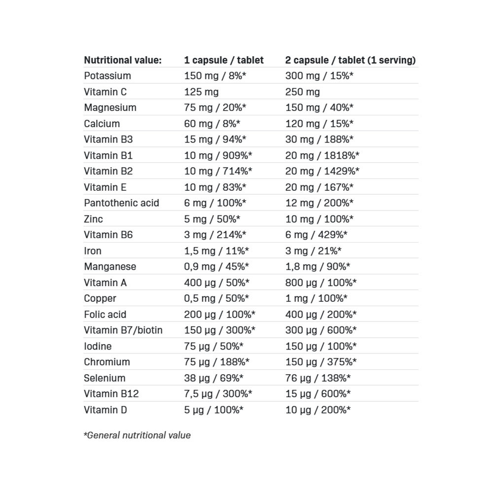 - Complexe de vitamines et minéraux : jusqu'à 22 ingrédients actifs