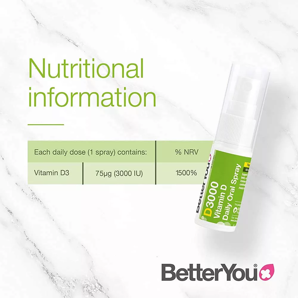 BetterYou Dlux Daily Vitamin D 3000 IU Oral Spray (15 ml, Menthe Poivrée Naturelle)