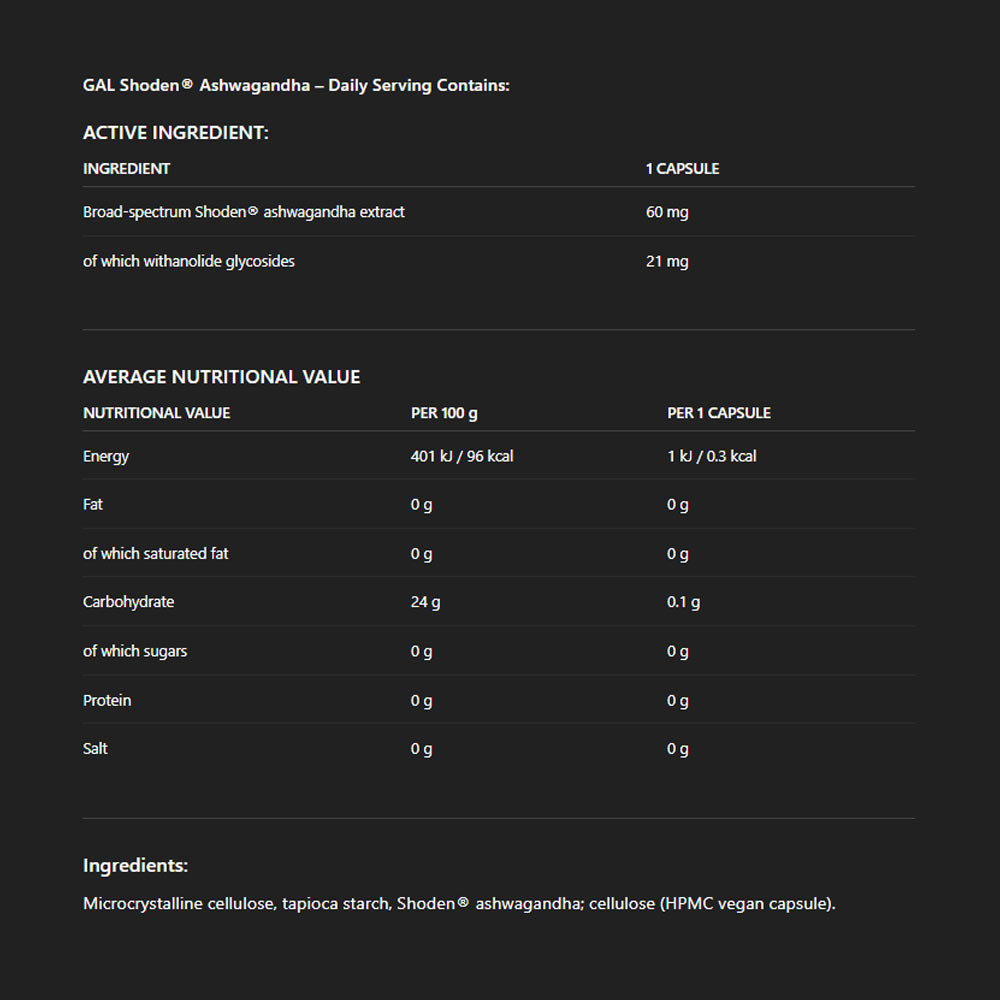 Bien que l'ashwagandha se prenne généralement à jeun, cela est moins important dans le cas de Shoden. Une seule gélule par jour peut être bénéfique, mais nous recommandons généralement de prendre 1 à 2 gélules le matin, et la même quantité le soir si nécessaire, environ une heure avant le coucher.