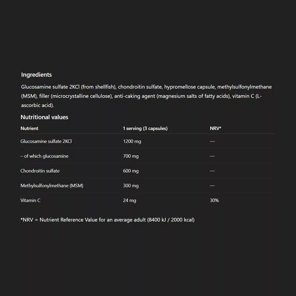 • contient de la glucosamine, de la chondroïtine, du MSM et de la vitamine C