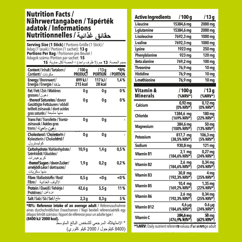 Notre mélange unique EAA Pro Amino fournit des acides aminés clés tels que la L-Leucine, la L-Glutamine, la L-Isoleucine et la L-Valine, qui agissent ensemble pour favoriser