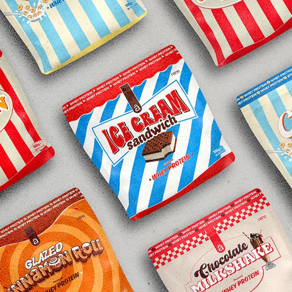 Ce mélange de whey offre jusqu'à 75 % de protéines, sans sucres ajoutés, et des saveurs inoubliables pour dynamiser vos séances d'entraînement