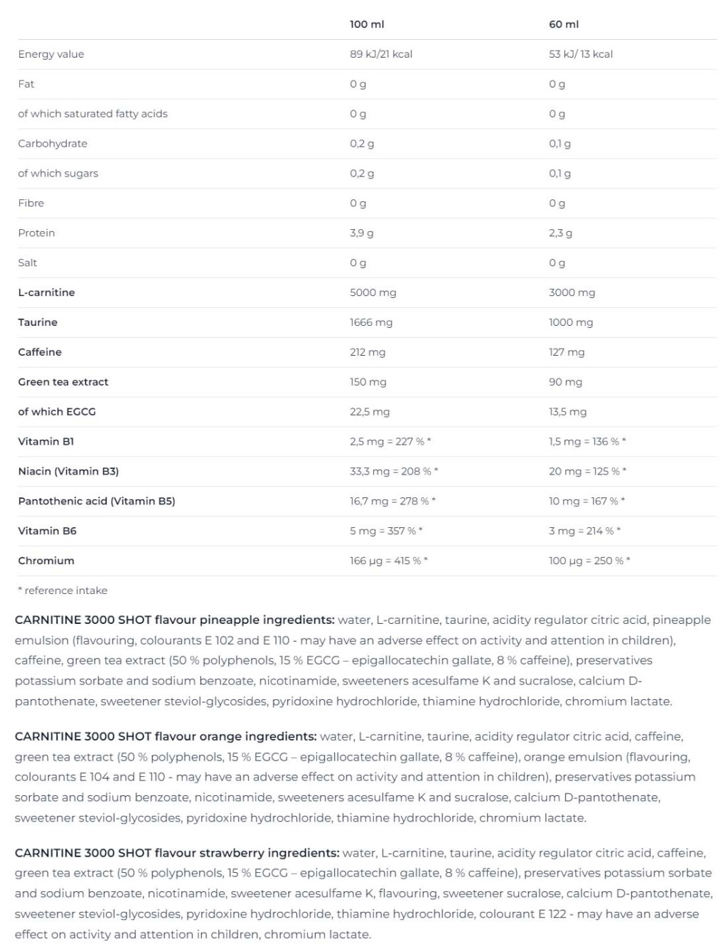 • 3000 mg of carnitine per packaging (CARNIPURE®)