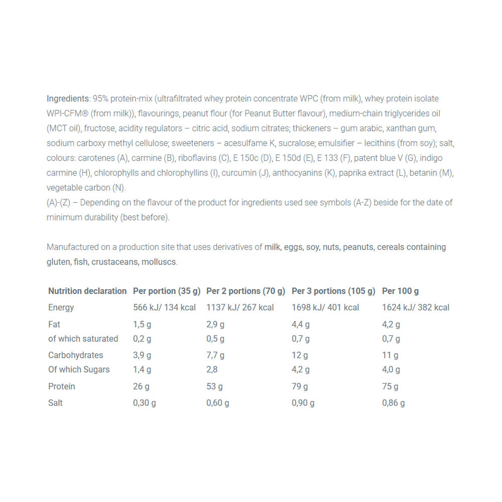 WHEY PROTEIN COMPLEX 100% – complément alimentaire. Avec sucre et édulcorants. Produit aromatisé. Concentré de protéines à haute teneur, en poudre. Mélange de concentré de protéines de lactosérum ultrafiltré de haute qualité et d’isolat de protéines de lactosérum. Ce produit est destiné aux personnes physiquement actives et aux sportifs, qui souhaitent développer leur masse musculaire. Les protéines contribuent à la croissance et au maintien de la masse musculaire.