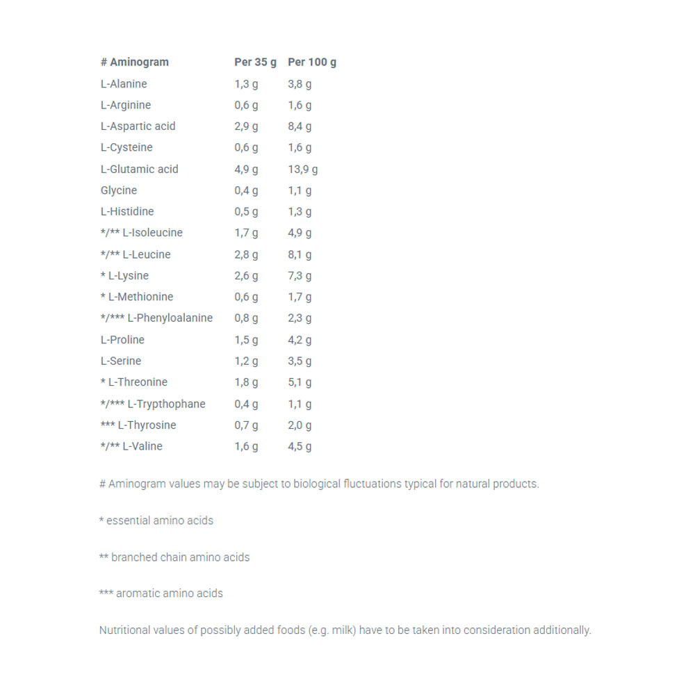 Prendre 1 à 3 portions par jour — avant le petit-déjeuner, entre les repas, après l'entraînement ou avant le coucher. Dissoudre 1 portion du produit (35 g de poudre = 1 dose) dans 150 ml d'eau : utiliser un shaker pendant au moins 10 secondes. Consommer immédiatement après préparation.