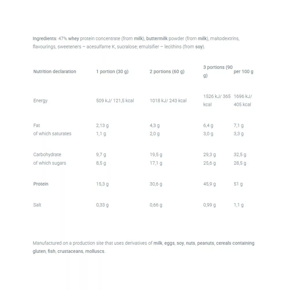 Whey Protein Xplode Powder est un produit unique, riche en protéines, auquel il est impossible de résister. Il vous permet de préparer rapidement et facilement un savoureux shake protéiné à la texture épaisse et crémeuse (grâce à l'ajout de poudre de babeurre). À chaque portion (30 g), vous bénéficiez de plus de 15 g de protéines complètes sous forme de concentré de protéines de lactosérum (WPC), qui contribue à la croissance et au maintien de la masse musculaire.