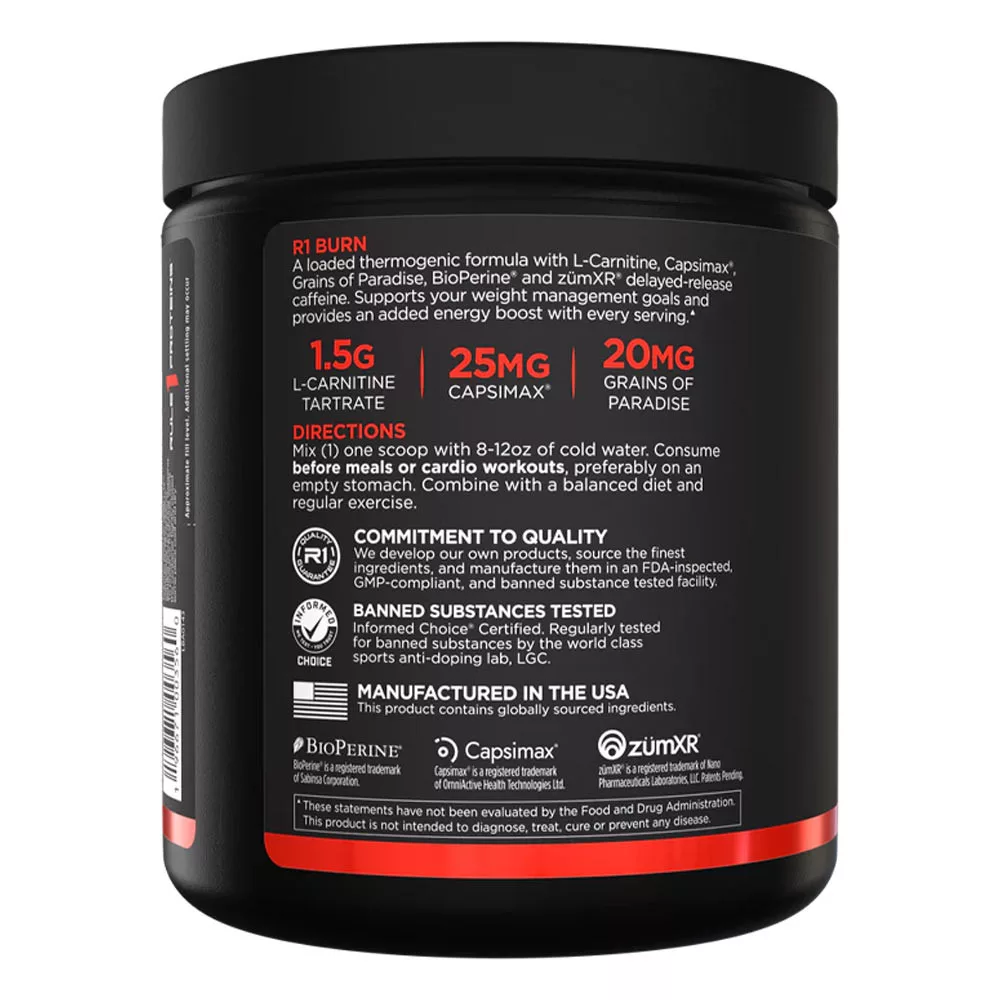 Burn contient un formidable mélange d'ingrédients thermogéniques, dont une combinaison multi-caféine dérivée de grains de café anhydres, de feuilles de thé, de graines de guarana et de sources micro-encapsulées à libération retardée. Une seule portion de poudres ou de capsules fournit l'énergie équivalente à environ deux tasses de café fort.