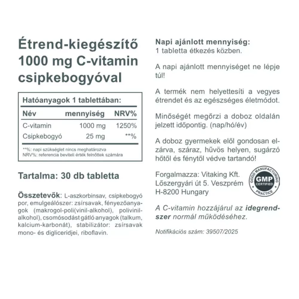 Vitaking C-1000 mg with 25 mg Rosehip (30 Comprimé)
