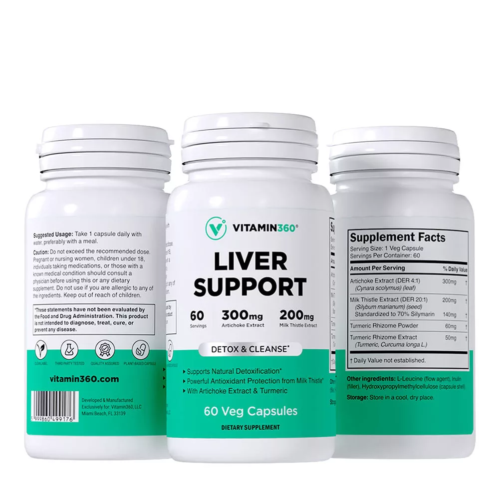 Le Vitamin360 Liver Support est un complément alimentaire complexe élaboré à partir d'ingrédients naturels pour soutenir la santé du foie. La silymarine contenue dans l’extrait de chardon-marie contribue au maintien de la santé hépatique, tandis que l’extrait d’artichaut soutient la digestion et la fonction biliaire normale. Il s’agit d’une formule conçue pour un usage quotidien, qui aide les processus métaboliques naturels de l’organisme et s’intègre parfaitement à un mode de vie équilibré.